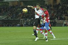 Antes, Negredo lo había intentado con un cabezazo que se marchó fuera y, en el otro campo, Francisco Medina 'Piti' había efectuado, sin encontrar portería, el único disparo rojiblanco del primer tiempo. El galo Dimitri Foulquier y el colombiano Jhon Córdoba incordiaron mucho a la zaga levantina, aunque el último pase de los locales nunca fue bueno, algo parecido a lo que ocurrió con los elaborados ataques de los visitantes, liderados siempre por un muy participativo Dani Parejo.